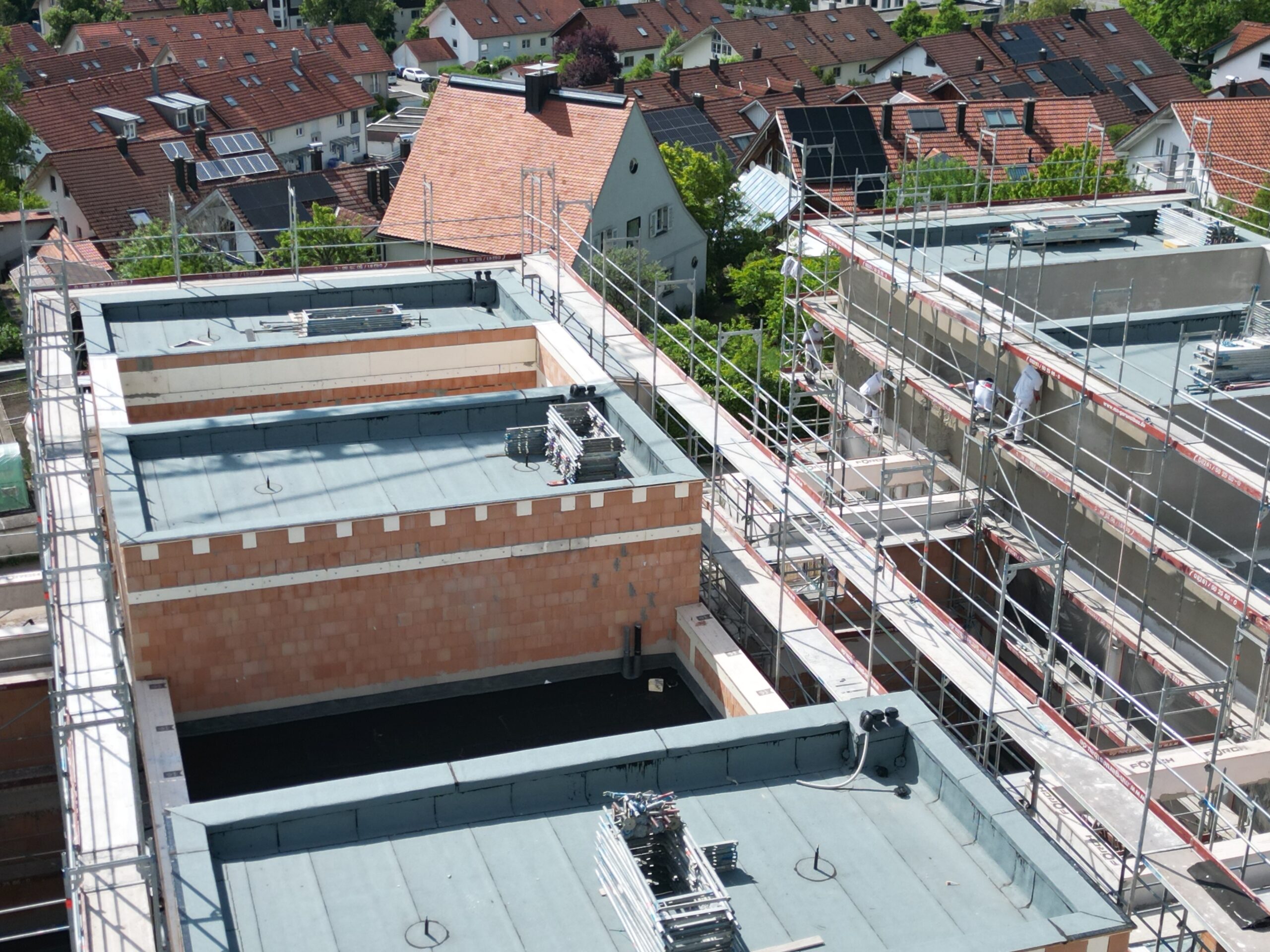 Beim Neubau eines Wohnkomplexes in Kempten (Deutschland) führte die Exonis Montagetechnik GmbH umfassende Schwarzdeckerarbeiten als Lohnleistung durch. Insgesamt wurden über 4.900 m² Abdichtungsflächen fachgerecht und normkonform hergestellt. Dazu gehörten eine dreilagige Abdichtung von rund 1.100 m² Dachfläche, die Abdichtung von etwa 1.200 m² Terrassen sowie 450 m² Balkonflächen. Zusätzlich wurde eine Tiefgarage mit einer Fläche von rund 2.200 m² abgedichtet. Verarbeitet wurden hochwertige Bitumen-Abdichtungssysteme der Firma SOPREMA. Die Ausführung erfolgte durch acht erfahrene Facharbeiter unseres Teams, die sämtliche Arbeiten präzise, termintreu und mit höchstem Qualitätsanspruch umsetzten.
